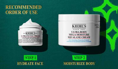 Få ultimat återfuktning för hela din kropp med detta Limited Edition gåvoset, som innehåller Kiehl's bästsäljande Ultra Facial Cream och Ultra Body Mega Moisture Squalane Cream, som ger 72 timmars återfuktning.